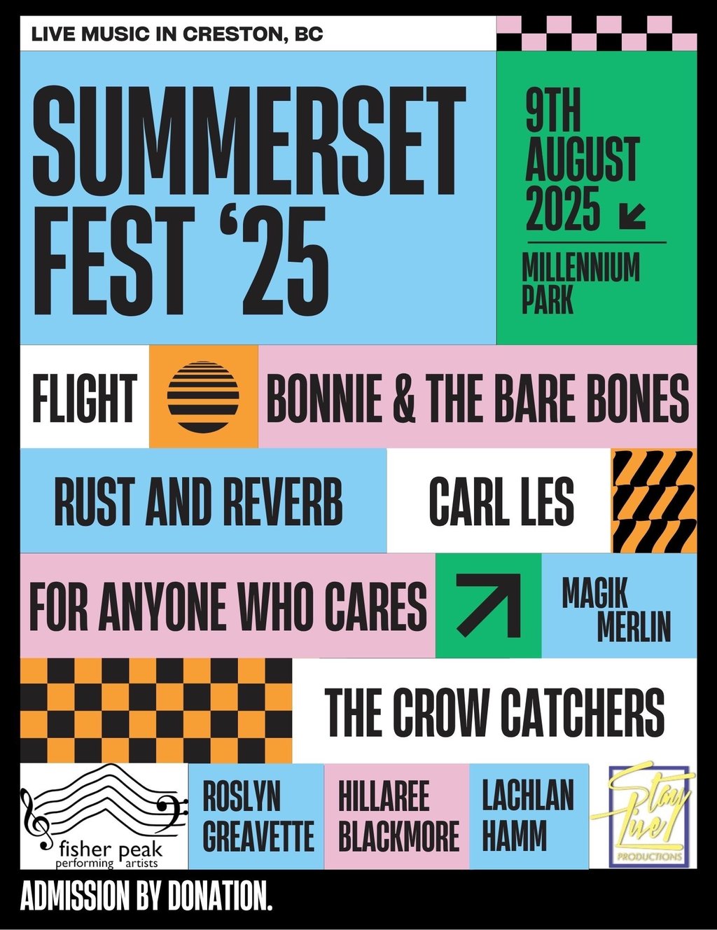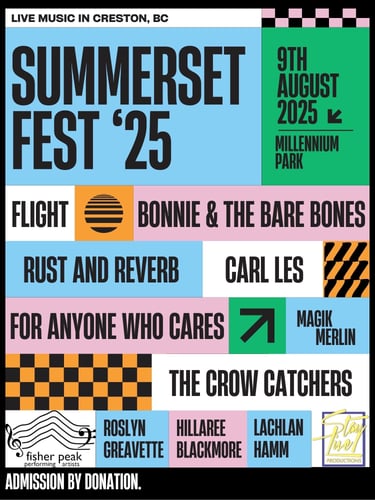 New to the Creston Valley and even newer in the local music scene, we thought the best way to do this would be to include a number of other live acts and make a day out of it. We've got a number of bands that we know Creston is gonna love, along with several solo artists on the bill to make this an unforgettable event.